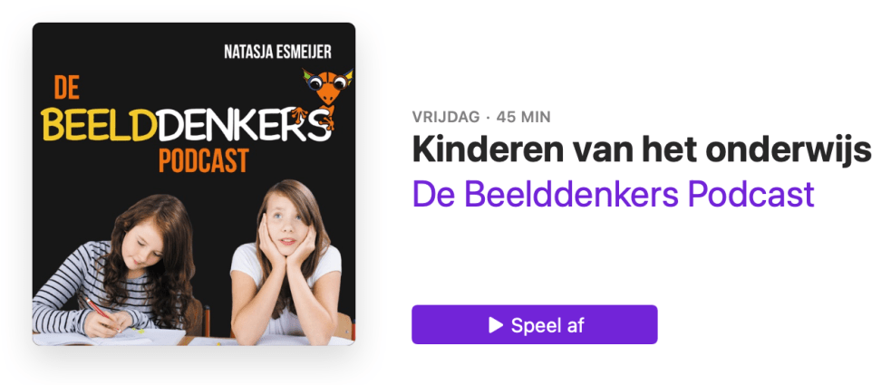 Voor mijn project ‘Kinderen van het onderwijs’ mocht ik in gesprek met Natasja Esmeijer- van Mullem van de Beelddenkers Podcast.